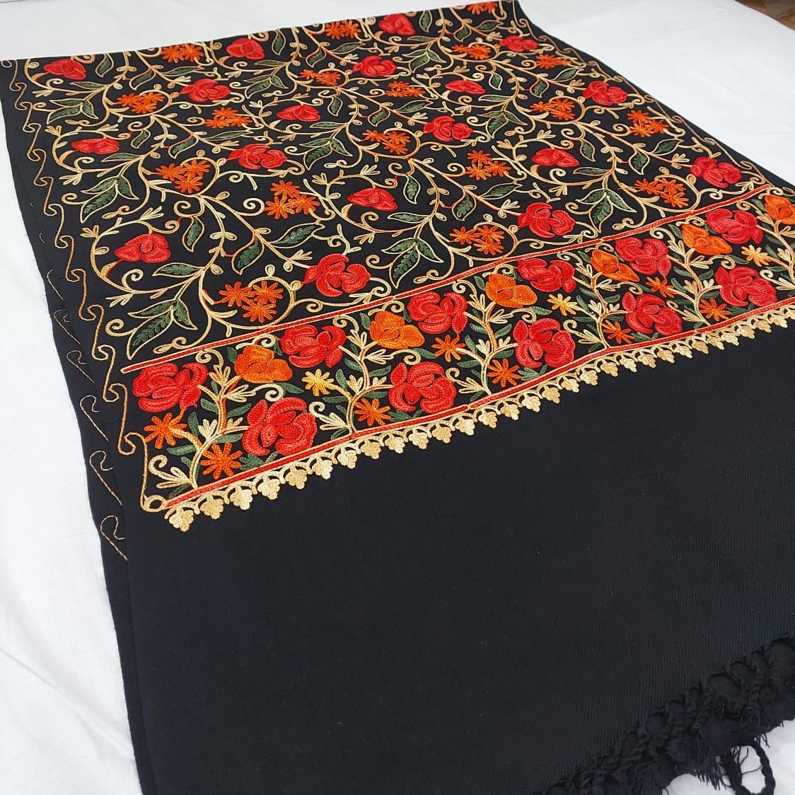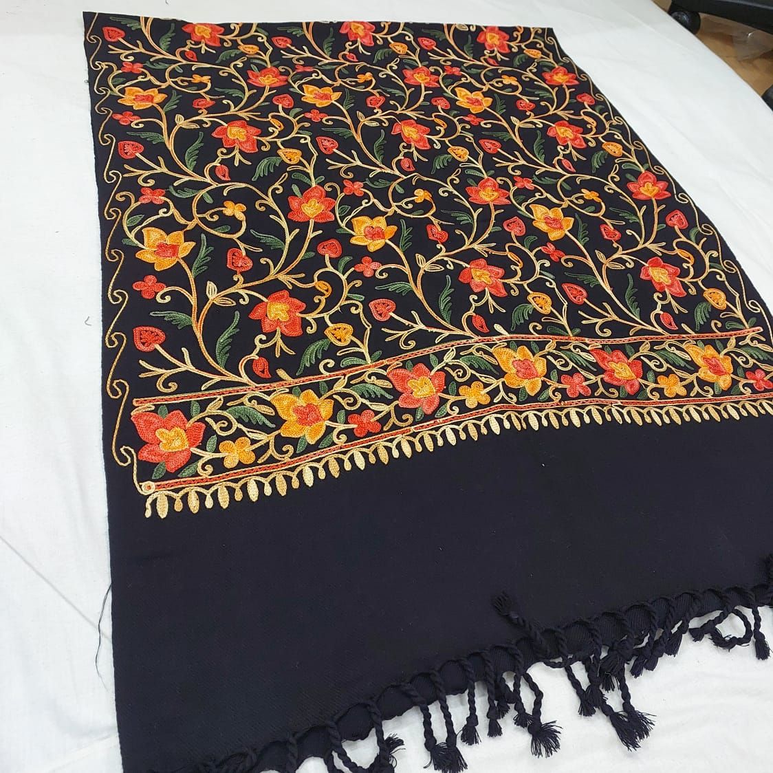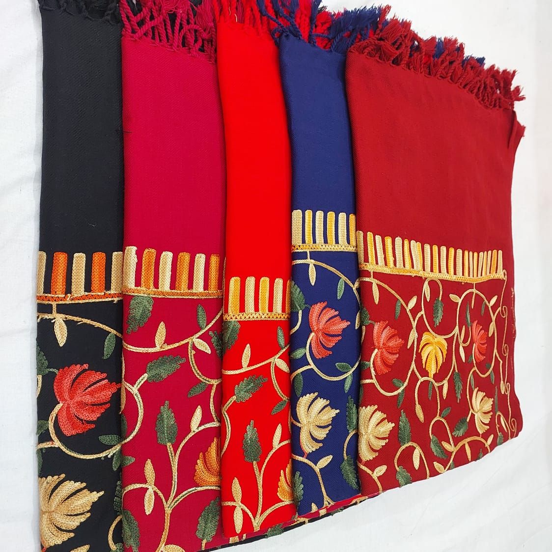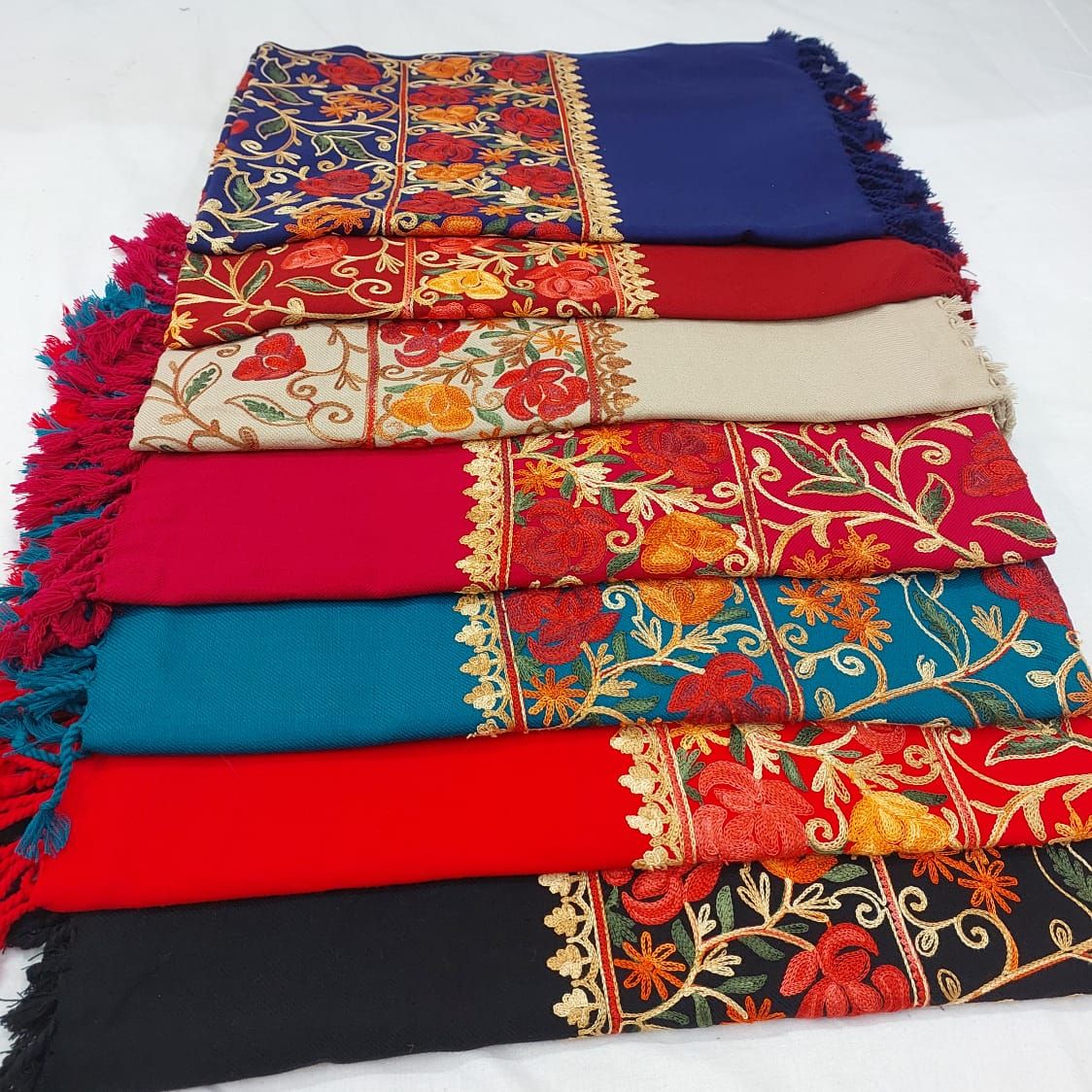 Leading Exporters, Wholesaler and Trader of Ladies Floral Embroidered Cashmilon Stole, Ladies Golden Lace Floral Cashmilon Stole and Ladies Striped Floral Cashmilon Aari Stoles from Amritsar.